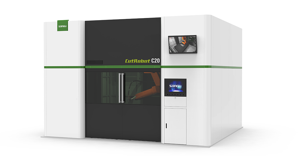 松谷激光科技CutRobot系列三維機器人光纖激光切割機,搭載具有隨動功能的激光切割頭保護關(guān)鍵部件。高精度工業(yè)機器人,安全聯(lián)鎖設(shè)計。應(yīng)用于:金屬蓋板三維激光切割,金屬部件三維激光切割,汽車部件三維激光切割